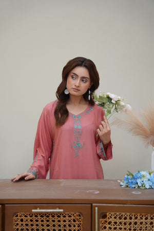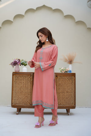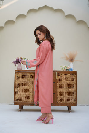 Blush Ember – Stitched Silk Karandi Embroidered Two-Piece Set