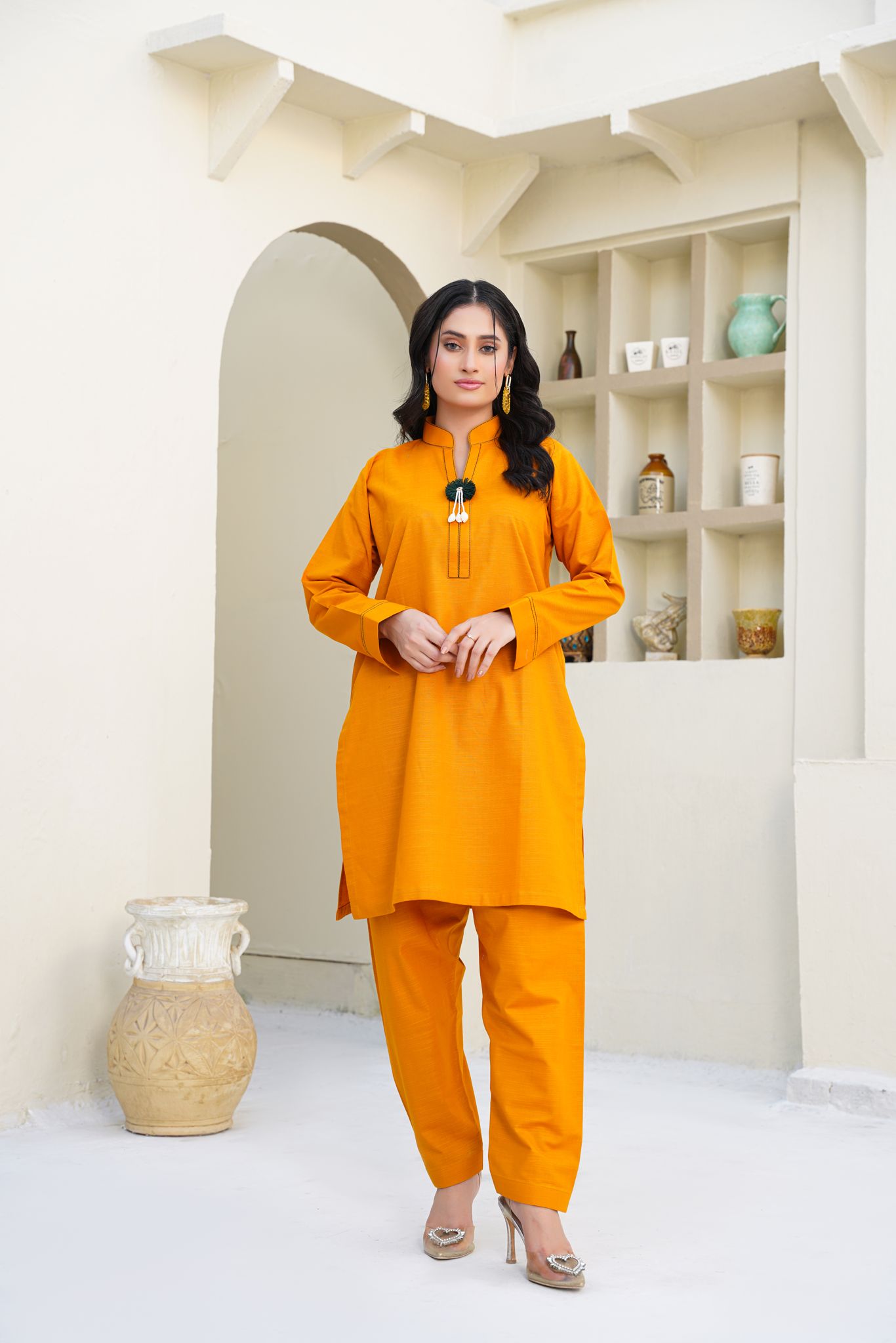 Radiate confidence and charm with our Saffron 2 Piece Co-Ord Set — a vibrant blend of sophistication and ease. Crafted from premium slub khaddar, this ensemble offers a comfortable yet polished look perfect for day-to-evening wear.