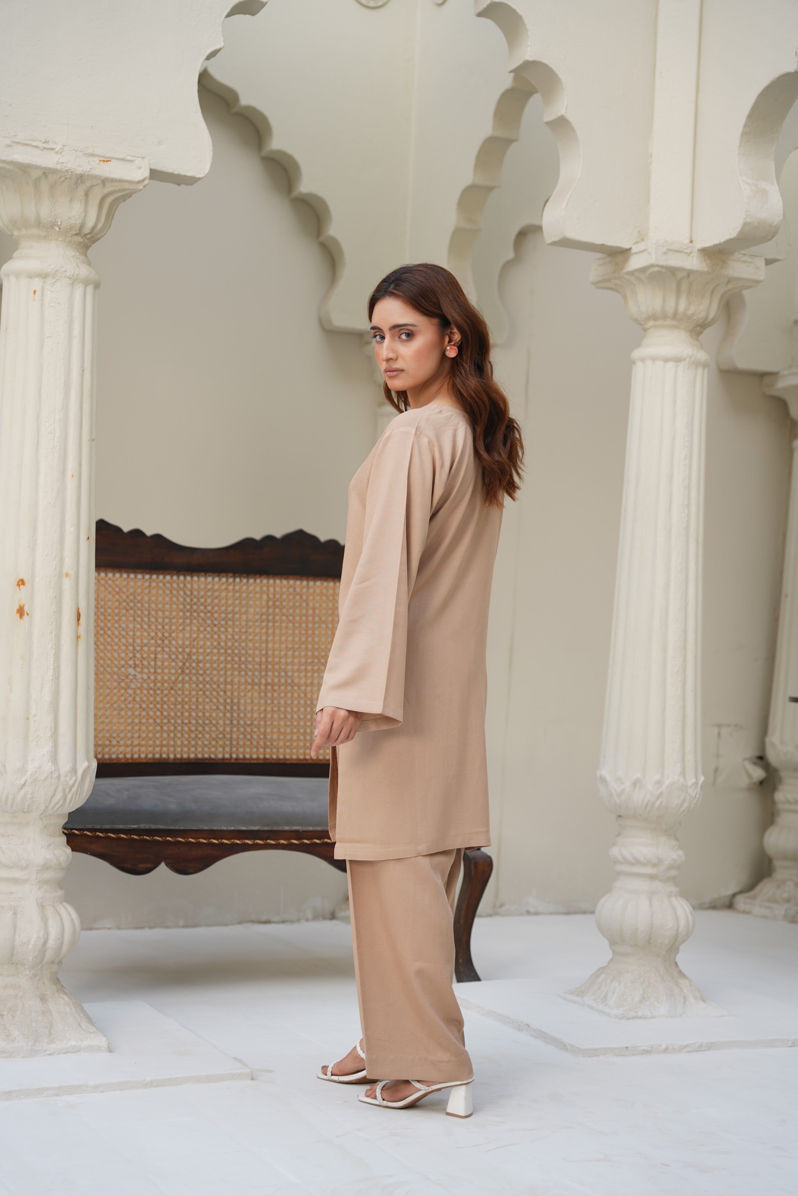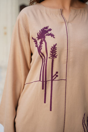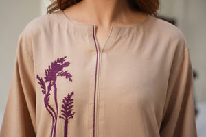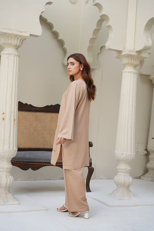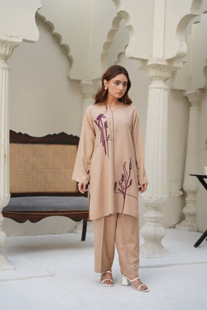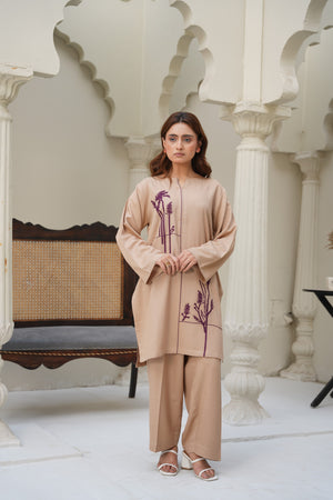 Experience understated elegance with Sand Dune, a stitched two-piece outfit crafted from premium silk karandi. Designed in a soft beige tone, this ensemble offers both comfort and sophistication, making it perfect for everyday wear, casual gatherings, or refined daytime outings.